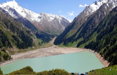 카자흐스탄의 대표 호수 중 하나, 투명한 에메랄드 빛을 띄는 해발 1756m에 위치한