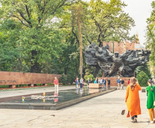 천산산맥의 만년설과 어우러지 아름다운 정원을 자랑하는 공원 초대 대통령 공원