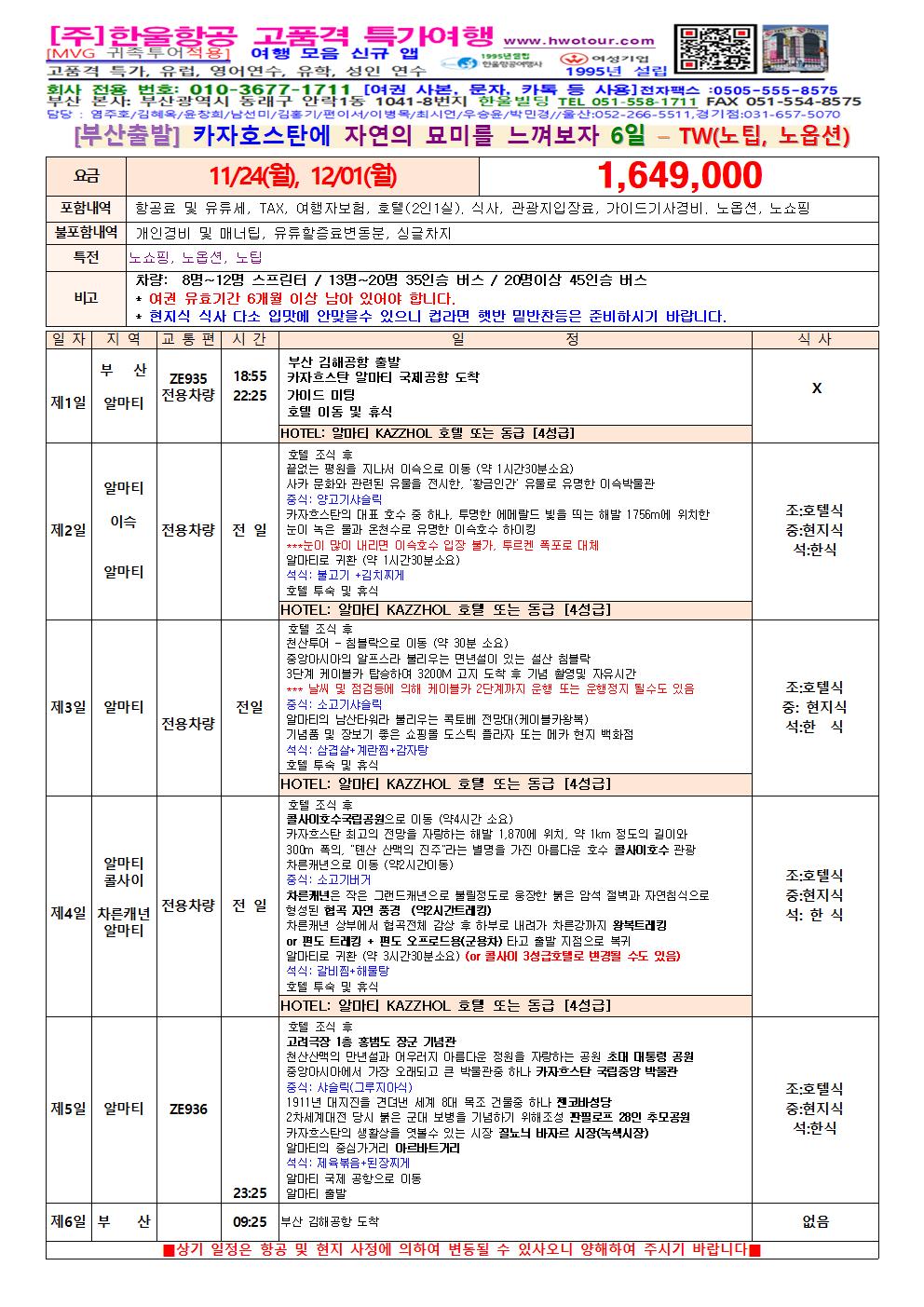 [부산 출발] 중앙아시아의 새로움을 더해보다 카자호스탄 4박 6일 - ZE(2회 운항)- ★ 노팁, 노옵션, 노쇼핑 ★